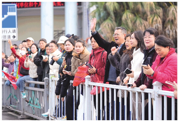 热情的桂林市民在赛道旁为选手呐喊加油。