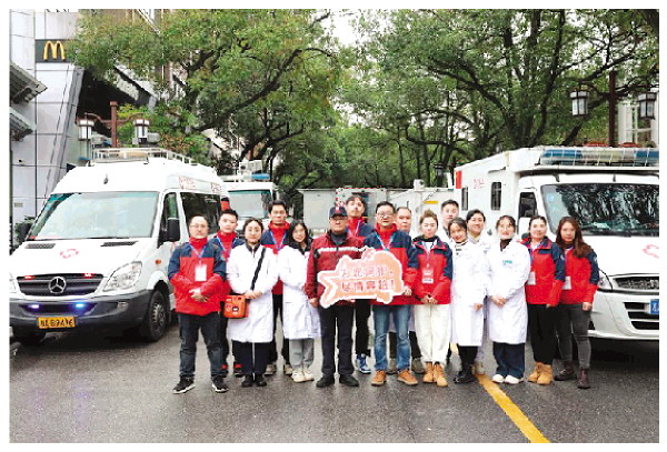 国家紧急医学救援队与中南大学湘雅二医院桂林医院联合派出医疗保障组为桂林“半马”护航。(中南大学湘雅二医院桂林医院供图)