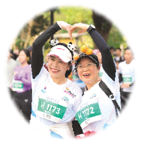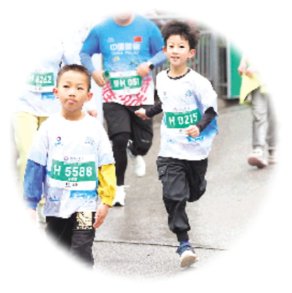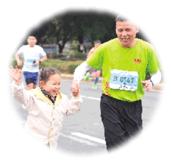 一位小女孩和爸爸一起跑完半程马拉松。 记者何平江 摄