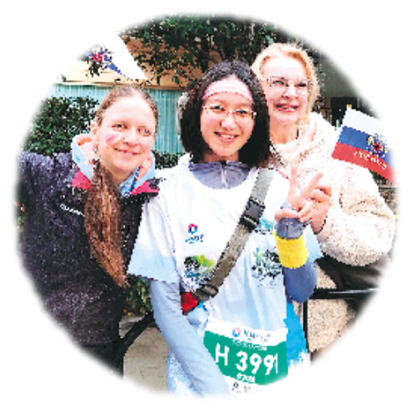桂林半程马拉松滨江路赛段,来自俄罗斯的游客被桂林马拉松的气氛感染,在路边为选手加油。 一鸣 摄