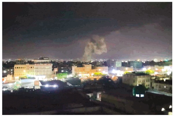 ▲3月15日,也门首都萨那一处地点遭到空袭后升起浓烟(手机拍摄)。 新华社发