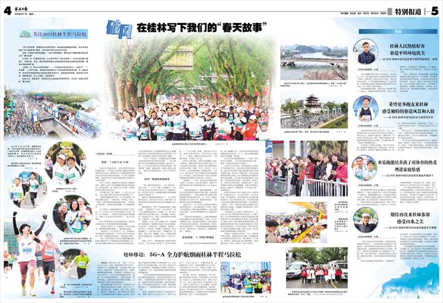 本报讯(记者周绍瑜)悦跑烟雨漓江,漫赏文旅桂林。3月16日上午8时,2025桂林半程马拉松在桂林市中心广场鸣枪开跑,来自全国各地的1.6万名跑友齐聚桂林,向着春天、向着梦想迎风奔跑,在桂林赛道上体验运动之乐,领略甲天下的山水之美,感受千年古城的人文之韵,见证桂林世界级旅游城市的独特魅力。市委书记、市长李楚出席鸣枪仪式,并参加欢乐跑。市委副书记卢新华出席鸣枪仪式。