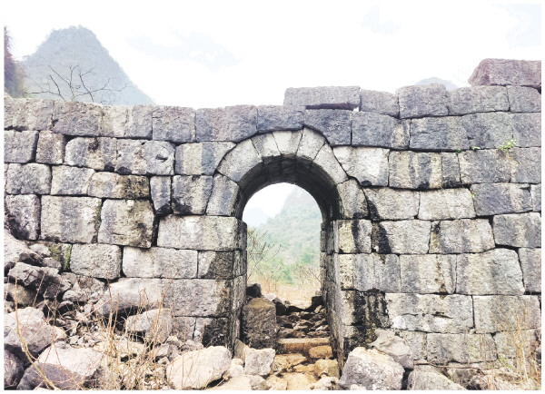 记者在毛顺才的带领下,也从暗嵅出发,循着古道踏上了寻找练兵场和寨门的行程。据介绍,附近山上有石门及寨墙4处,均保存较为完好。