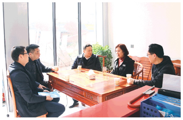 资源县委常委、副县长陶日桂(中),资源金融监管支局副局长刘基林(左一)和资源农村商业银行董事长韦玉忠(右一)在房地产公司现场办公。