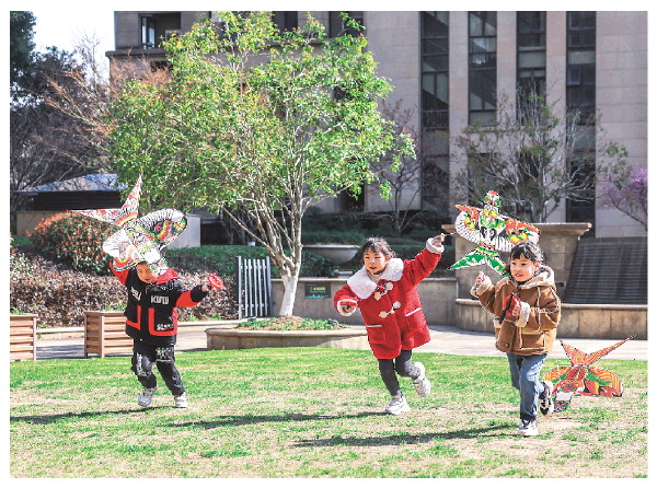 为迎接即将到来的春分节气,浙江省湖州市龙泉街道学士府社区举行以“轻风托纸鸢”为主题的风筝非遗体验活动,社区居民动手制作并放飞传统风筝。近期,龙泉街道在多个社区开展做风筝放风筝、绿道毅行、游戏互动等丰富多样的春季趣味活动,鼓励社区居民走到户外、感受春意。 新华社记者徐昱 摄