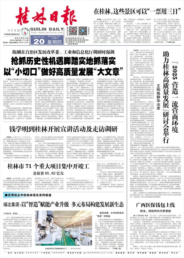 助力桂林高质量发展”研讨会举行 王刚杨静华出席   本报讯(记者文新军)3月18日,由民进中央企业家联谊会指导,民进广西区委主办,桂林市委、市政府承办的“2025营造一流营商环境 助力桂林高质量发展”研讨会举行。全国人大常委会委员、民进中央副主席王刚,自治区人大常委会副主任、民进广西区委主委杨静华出席会议并讲话。市委常委、统战部部长蒋育亮致辞,市委常委、常务副市长蒋春华向与会嘉宾介绍桂林市经济社会发展情况。
