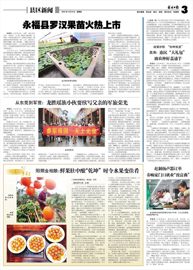 永福县罗汉果苗火热上市   本报讯(记者李忠波 刘菁 通讯员刘玉婷 向海林 文/摄)随着气温回暖,在享有“中国罗汉果之乡”美誉的永福县,绿意葱茏的罗汉果苗迎“热”上市,逐步迈入移栽关键期。踏入育苗棚,一幅热火朝天的劳作画卷映入眼帘,工人们忙碌的身影穿梭其中,为这蓬勃发展的罗汉果产业注入源源不断的活力。