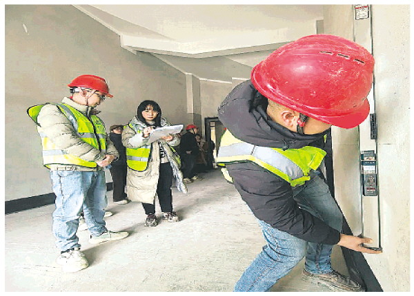 ▲业主代表参与对新建房屋分户验收的复验。 记者陈静 摄