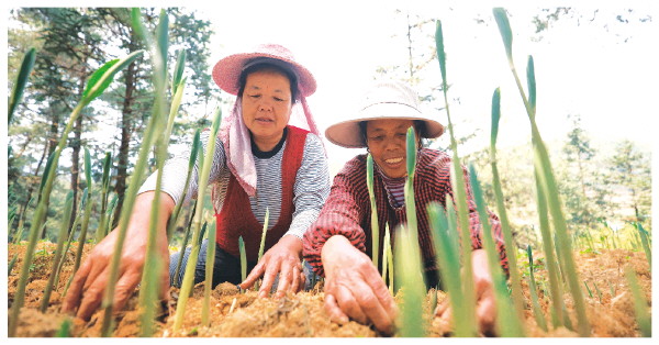 工人们给种植的玉竹除去杂草。记者刘健 通讯员莫京霖 摄