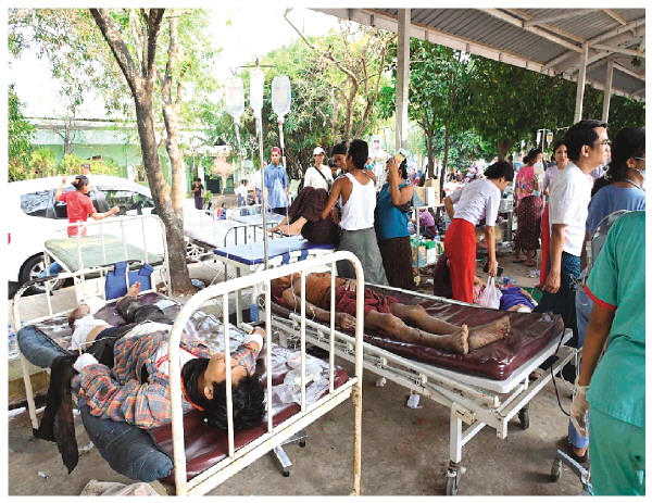 ◥3月28日,受灾民众在缅甸内比都接受救治。