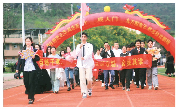 ▲三中学子意气风发地穿过成人门、成才门 (桂林市第三中学供图)