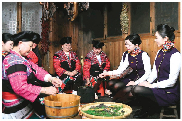 ▲桂林航空乘务员走进龙胜黄洛瑶寨