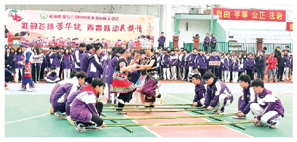 桂林市第五中学通过举办本次活动,将民族文化融入校园生活,让师生们在竞技中感悟传统、在协作中增进情谊,不仅展现出五中学子锐意进取、蓬勃向上的精神风貌,更为推动中华优秀传统文化薪火相传、铸牢中华民族共同体意识贡献教育力量。 (郭萌 文/摄)
