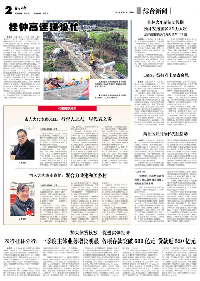 本报讯(记者苏展 通讯员郑长贤)记者从桂林火车站获悉,今年清明节铁路运输期限为4月3日至4月7日,共5天,桂林火车站(包括桂林、桂林北、桂林西、恭城、阳朔、三江南站)预计发送旅客35万人次,与去年基本持平。
