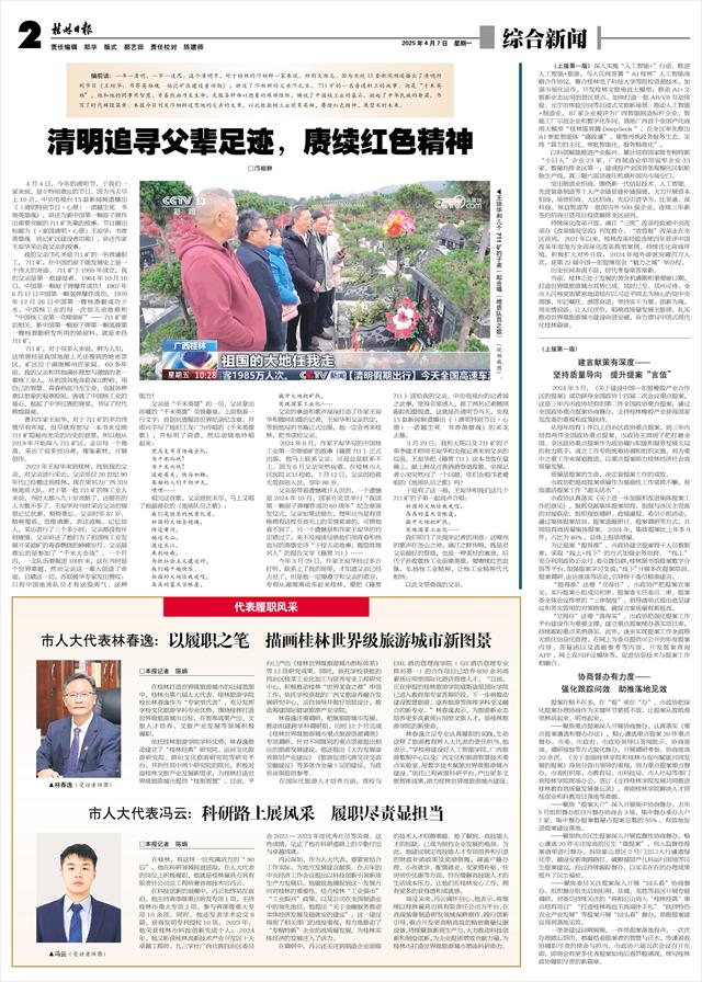 坚持制造业当家。深入实施新一轮工业振兴三年行动,2024年工业投资增长26.1%、排全区第三,全市规上工业增加值增长6.6%。桂林深科技产值超120亿元、实现我市百亿元工业企业零的突破;获评广西链主型龙头企业9家,入选广西民营企业100强11家;输变电产业集群被评为国家级产业集群,国内首台(套)重大技术装备数量占全区三分之一。(下转第二版)