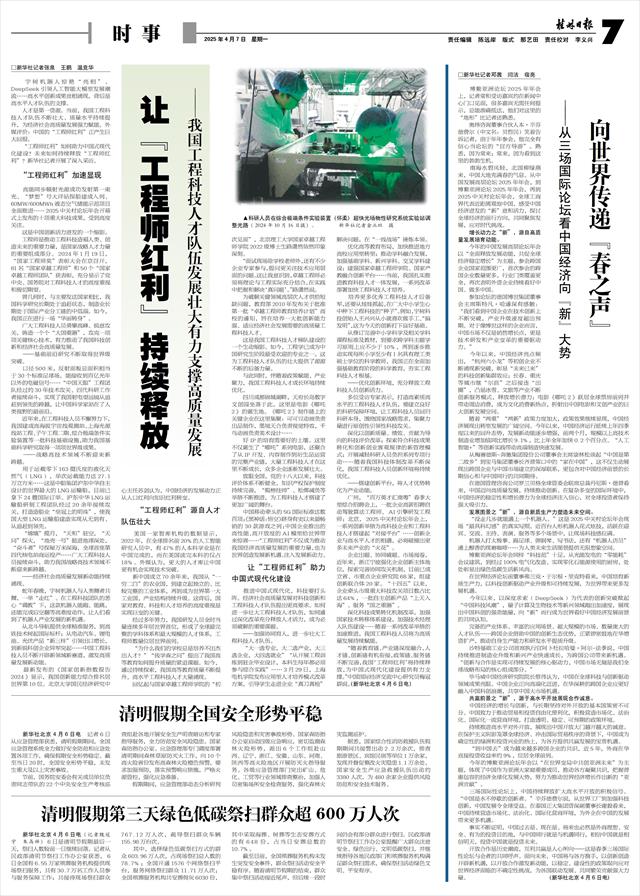 中国移动牵头的5G国际标准达数百项;《黑神话:悟空》跻身有史以来最畅销的30款游戏之列;中国企业推出的高性能、高开放度的AI模型给世界带来惊喜……“工程师红利”不仅成为推动我国经济高质量发展的重要力量,也为世界创造发展新机遇、注入发展新动力。
