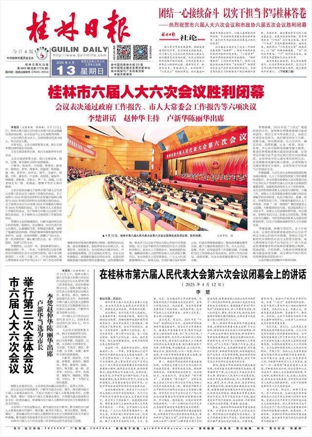 在桂林市第六届人民代表大会第六次会议闭幕会上的讲话 (2025年4月12日)
