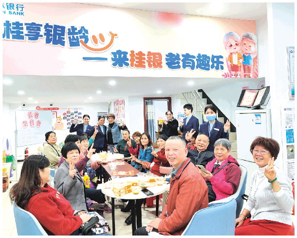 ▲桂林银行举行“长者生日会”,邀请“银发”客群一起品赏油茶。