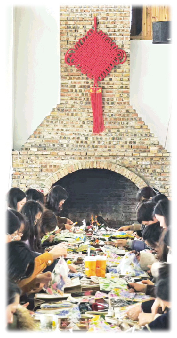 今年“三八”妇女节前夕,不少女性顾客齐聚“山镜·路亚小院”,参与百人围炉煮茶手工游戏活动。 (受访者供图)