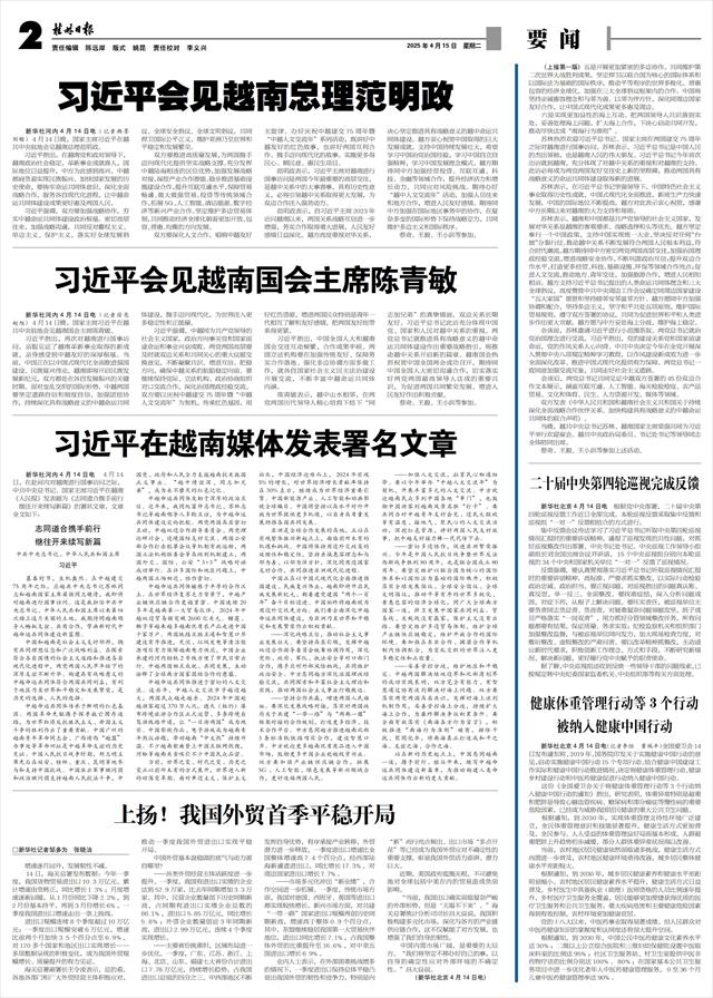 暮春时节,生机盎然。在中越建交75周年之际,应越共中央总书记苏林同志和越南国家主席梁强同志邀请,我即将对越南进行国事访问。这是我担任中共中央总书记、中华人民共和国主席以来第四次踏上这片美丽的土地,我期待同越南领导人畅叙友谊、共商合作,擘画新时代中越命运共同体建设新蓝图。