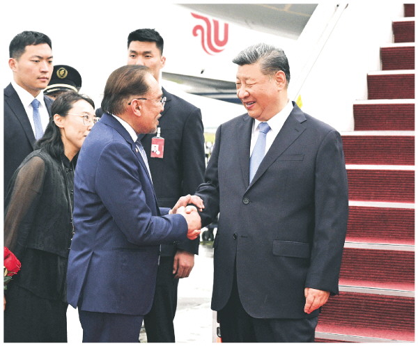 专机抵达吉隆坡国际机场时,马来西亚总理安瓦尔,外交部部长穆罕默德,陪同部长、交通部部长陆兆福等高级官员热情迎接。马来西亚儿童向习近平献花,马来西亚青少年表演富有当地特色的舞蹈,挥舞中马两国国旗,热烈欢迎习近平到访。