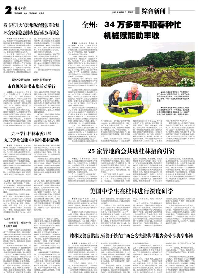 本报讯(记者周文琼)4月6日至24日,50名来自美国旧金山中美国际学校的师生在桂林开展19天的研学活动,用脚步丈量桂林山水之美,在旅途中感受桂林的丰富历史文化和多彩民俗。