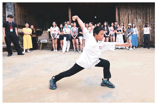 活动中,阳朔青少年代表为法国青年学子表演中国传统武术。
