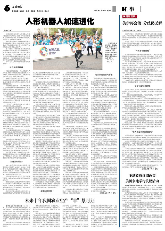 未来十年我国农业生产“丰”景可期   新华社北京4月20日电(记者古一平)在2024年我国粮食产量首次突破1.4万亿斤基础上,农业农村部市场预警专家委员会4月20日对外发布的《中国农业展望报告(2025—2034)》预测,伴随农业科技发展水平加速提升,未来十年我国粮食和重要农产品供给保障能力将实现量质全方位提升,农业综合效益和竞争力将显著增强。