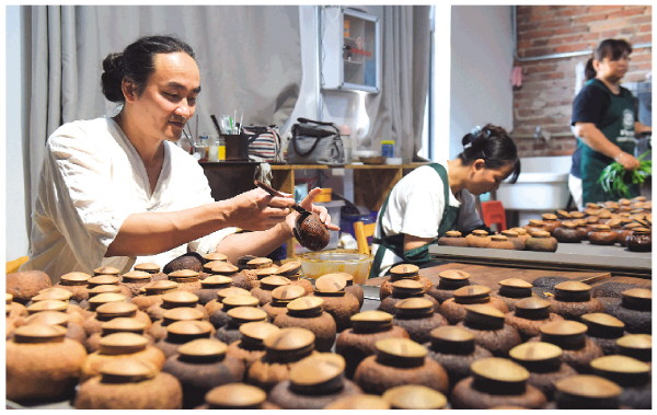 为了让更多人感受桂林柚罐的魅力,这些年来,王伯杨不仅在线上开直播讲授柚罐制作技艺,而且免费教授给柘木镇窑头村及周边的村民。他说,这种原本从寻常百姓家走出的传统技艺,能回到寻常百姓家,才是最好的“归宿”。而当越来越多的“传家罐”以手工艺品的身份走进寻常百姓家,柚罐技艺也将传承不息。