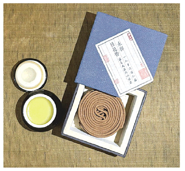 图①:木樨香膏(左)和木樨香盘香成品。 记者蒋璇 摄