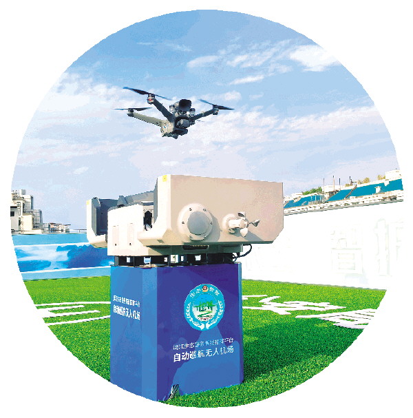 ◥一架无人机从阳朔兴坪段的自动机场腾空而起,开始了一天的漓江流域巡航任务。