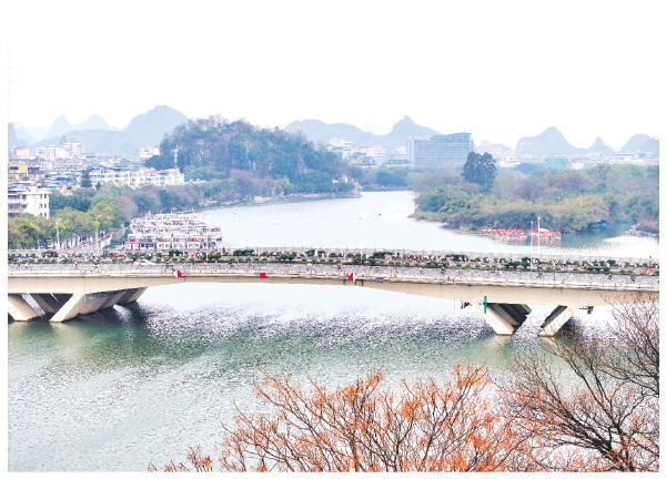 ▲3月16日,2025桂林半程马拉松赛举行,选手们从漓江桥上跑过。沿途美丽的风景让选手们有了“人在画中跑”的绝妙体验。 记者唐艳兰 摄