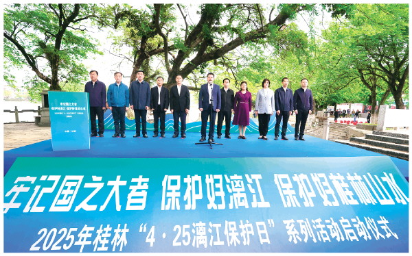 本报讯(记者周绍瑜)4月25日,2025年桂林“4·25漓江保护日”系列活动启动仪式在兴安县灵渠公园举行。活动深入贯彻习近平生态文明思想,全面落实习近平总书记关于广西工作论述的重要要求和对桂林的重要指示精神,更好宣传展示漓江保护成果,更广泛汇聚守护一江碧水的磅礴力量,切实增强公众自觉保护漓江的意识。市委书记、漓江风景名胜区党工委书记李楚出席并宣布活动启动,市委副书记、市长、漓江风景名胜区管委会主任卢新华主持,市人大常委会主任赵仲华、市政协主席陈丽华出席。