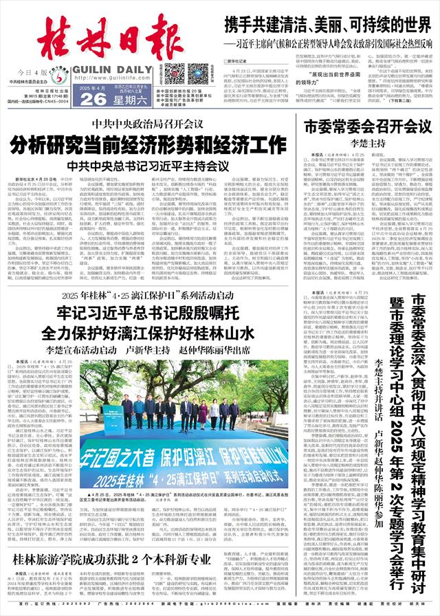 本报讯(记者周绍瑜)4月25日,市委书记李楚主持召开市委常委会会议,重温习近平总书记关于保护漓江、保护桂林山水的重要指示批示精神,学习贯彻习近平总书记最新重要讲话精神,以及自治区有关会议精神,研究部署我市贯彻落实措施。