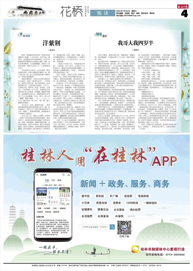 其实赏花不必求远,山水公园里、新区环城水系旁,同样大量种着洋紫荆。桂、柳气候大抵一致,这几天就连我家楼下的路边也“忽迸红英簇紫蕤”。
