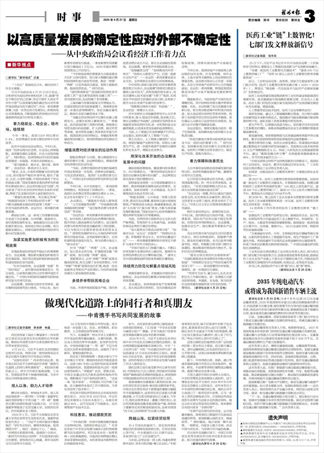 “坚持尽力而为、量力而行,扎扎实实把民生工作做好做实,进一步增强人民群众的获得感、幸福感、安全感,将为经济社会高质量发展提供更为坚实的保障。”董煜说。(新华社北京4月25日电)
