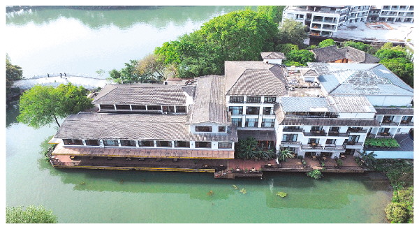 图⑤:邻水而建的榕湖饭店4号楼现状。 记者苏展 摄
