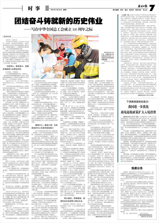 走过百年历程的中国工会,聚焦党的中心任务,必将团结引导广大职工群众,以昂扬向上的精神状态和一往无前的奋斗姿态,投身全面建设社会主义现代化国家的火热实践。