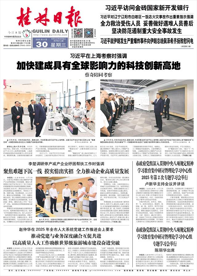 本报讯(记者周绍瑜)4月29日,市委书记李楚到七星区调研停产减产企业纾困帮扶工作时强调,要深入贯彻落实习近平总书记关于广西工作论述的重要要求和对桂林的重要指示精神,全面落实2025年二季度全区和全市经济发展调度会部署要求,坚持实干为要、创新为魂,用业绩说话、让人民评价,聚焦企业发展难题,下沉一线摸实情出实招,用心用情用力帮助企业排忧解难,全力推动企业高质量发展,比学赶超二季度,确保完成上半年“双过半”目标,加快推动世界级旅游城市建设奋进突破。