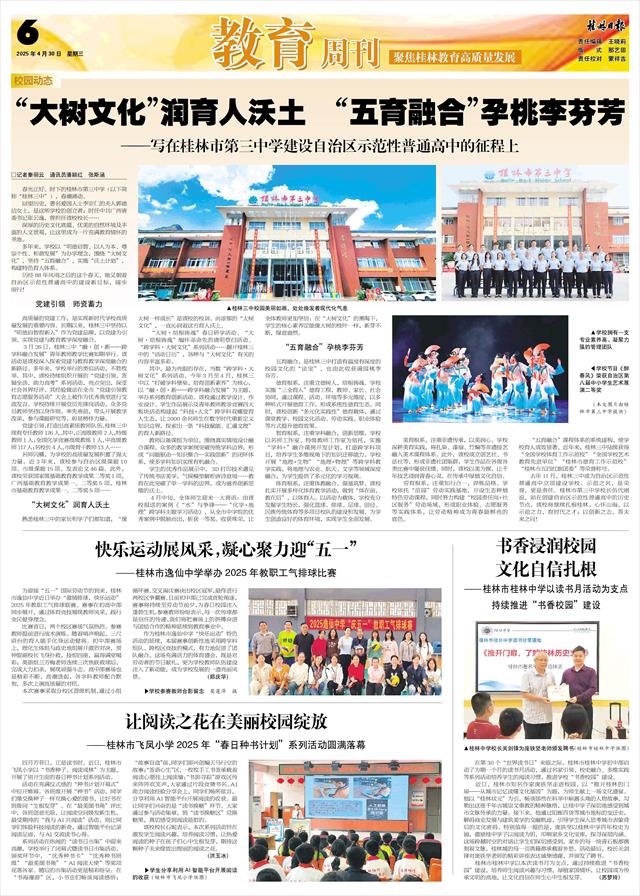 桂林市桂林中学以本次读书月为支点,通过持续推进“书香校园”建设,培养师生阅读兴趣与习惯,厚植家国情怀,让校园成为传承文明的高地,让文化自信在师生心中生根发芽。 (苏梦玲)