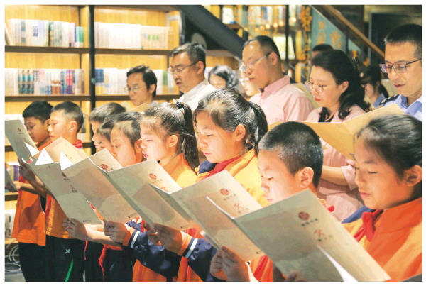 读万卷书,行万里路。在“世界读书日”来临之际,广西师范大学出版社向全社会发出了招募令,邀请海内外100个文化团体在图书馆、书店、文化景区、城市地标等处以“阅山海·共心声”为主题开展经典共读。共读的形式多种多样,有小组朗读、吟诵,也有歌咏、话剧等新颖的形式。书迷们手捧书籍,感受传统文化经典篇目贯穿古今的魅力。