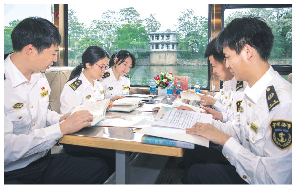 ◤“世界读书日”当天,独秀书房携手桂林航天工业学院青年学生社团,在漓江的游船上开展山水共读,借此呼吁公众关注生态保护,借一缕书香换一抹绿意。