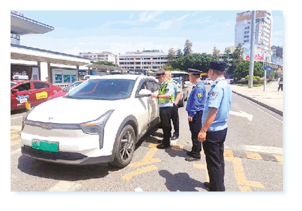 旅游市场秩序联合执法检查组在桂林站对网约车辆开展例行检查。(市交通运输综合行政执法支队供图)