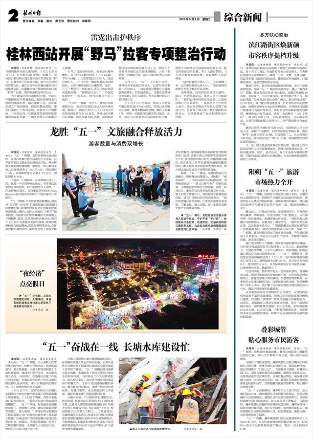 此外,记者从多家旅行社了解到,今年“五一”假期,我市迎来客流高峰。早在节前,市文旅部门就组织全市旅行社负责人、一线带团导游、景区代表召开旅游服务质量提升培训会,进一步规范旅游市场秩序。各旅行社也对车队、餐饮、酒店等供应商进行了全面安全质量检查,对导游开展相关培训,保障假期游客出行。市导游协会还联合市景区协会、市旅行社协会,共同发起“我服务我承诺”品牌宣言行动,向全体会员导游发出倡议,传递桂林导游热情服务、坚守承诺的形象,为广大游客带来更优质、更舒心的旅游体验。