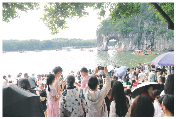 中国农业银行桂林分行自觉履行大行金融担当,大力支持桂林世界级旅游城市建设。近两年累计发放旅游业贷款21.2亿元,余额达31.42亿元,支持旅游主流企业、旅游车船、民宿业主等主体开展景区改造、设施升级、服务提升。“五一”假日期间桂林市接待游客总人数、旅游总收入同比增长均超26%。图为“五一”期间游客在象山景区观光。 伍文悄 摄