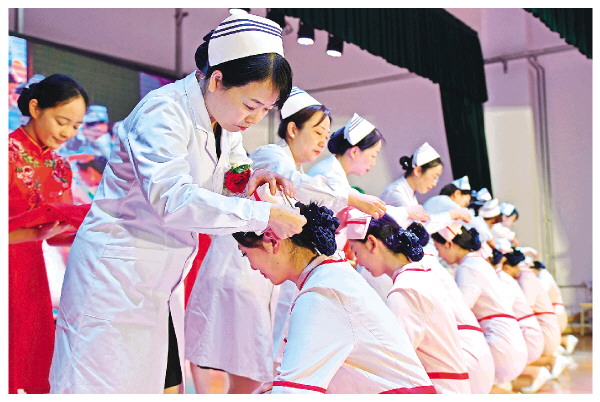 在“5·12”国际护士节来临之际,各地开展多种形式的活动,迎接“白衣天使”的节日。今年护士节的主题为“关爱护士队伍,守护人民健康”。 新华社发(孙文潭 摄)