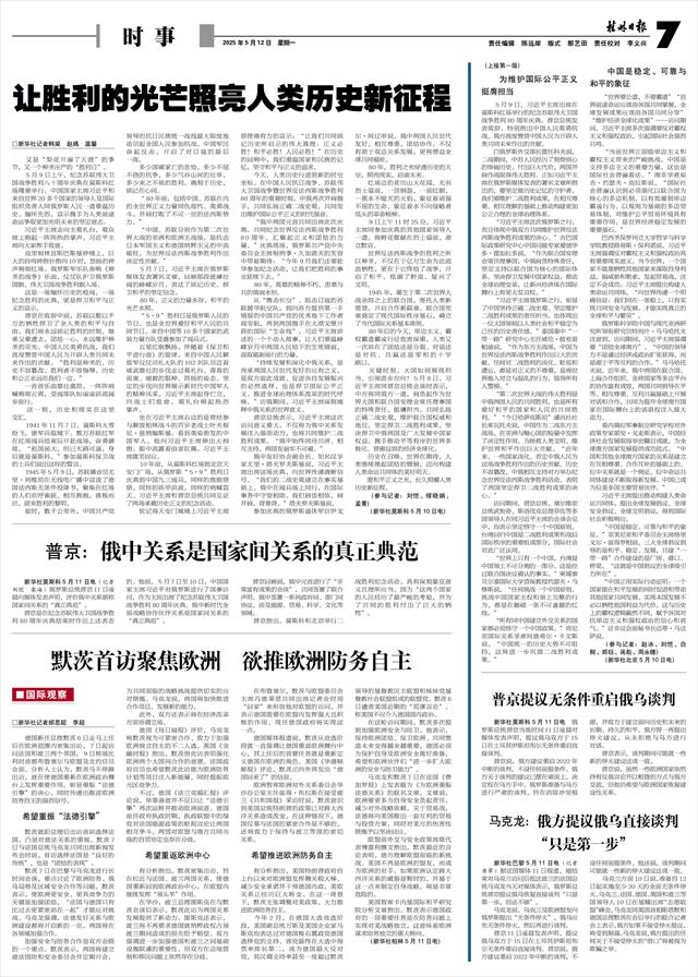 5月9日,习近平主席出席在莫斯科红场举行的纪念苏联伟大卫国战争胜利80周年庆典。普京总统发表致辞,特别指出中国人民英勇抗战,俄方高度赞赏中国人民为开辟人类共同未来作出的贡献。