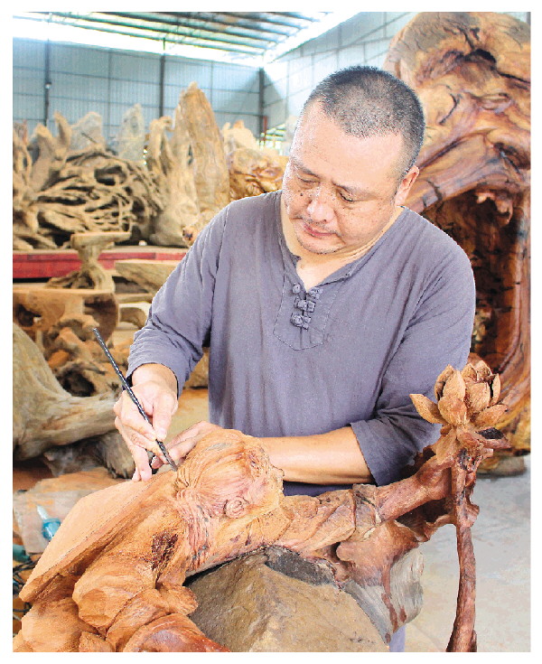 根雕馆的同事告诉记者,在日常创作过程中,选材、打坯、修光、打磨,每个流程张利梓都一丝不苟,圆雕、透雕、浮雕、线雕,每种技法他都游刃有余。