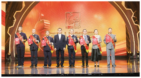 ▲张利梓(左二)在2024年“广西工匠”年度人物发布活动现场领取荣誉证书。