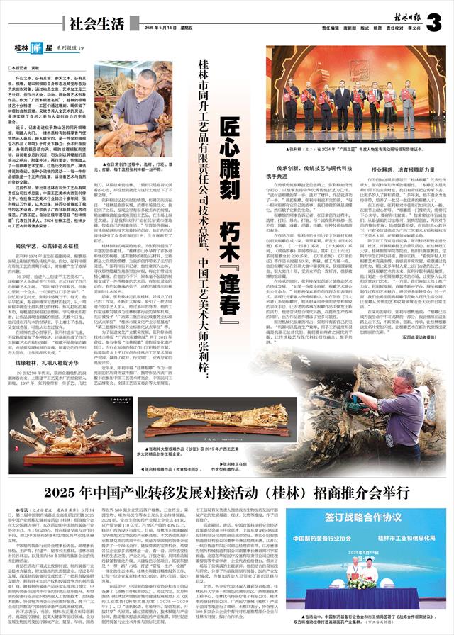 桂林市同升工艺品有限责任公司技术总监、中国工艺美术大师张利梓: 匠心雕刻 朽木“逢春”   □本报记者 黄敏